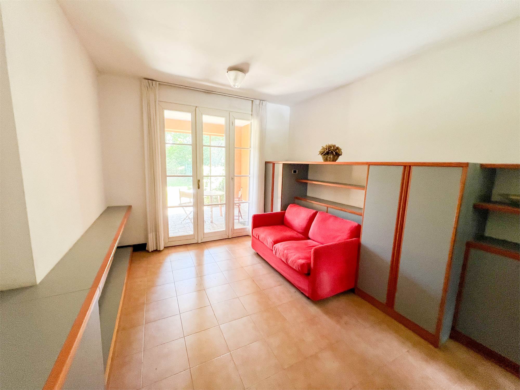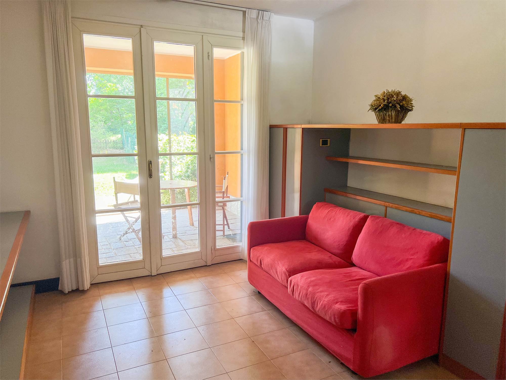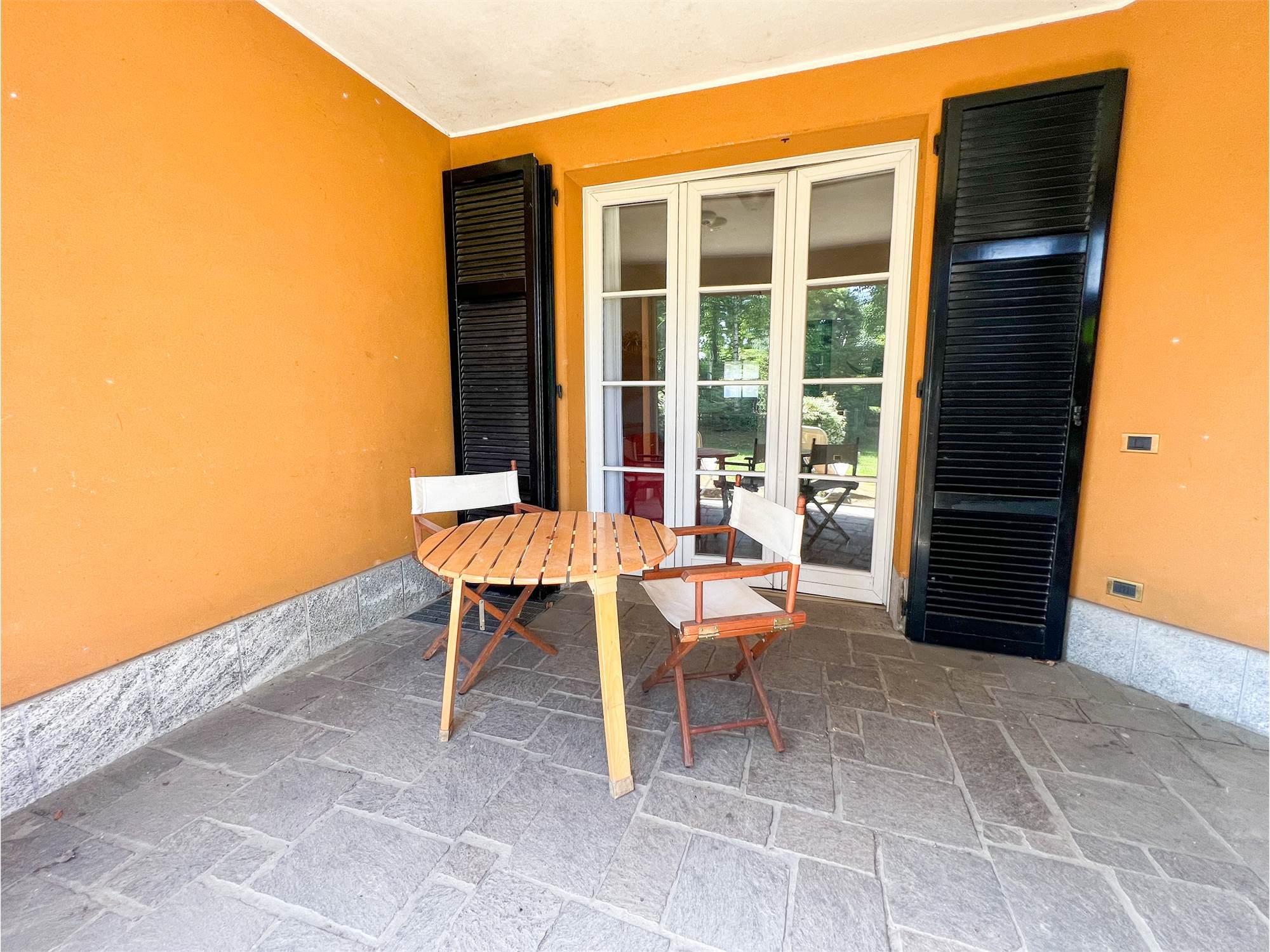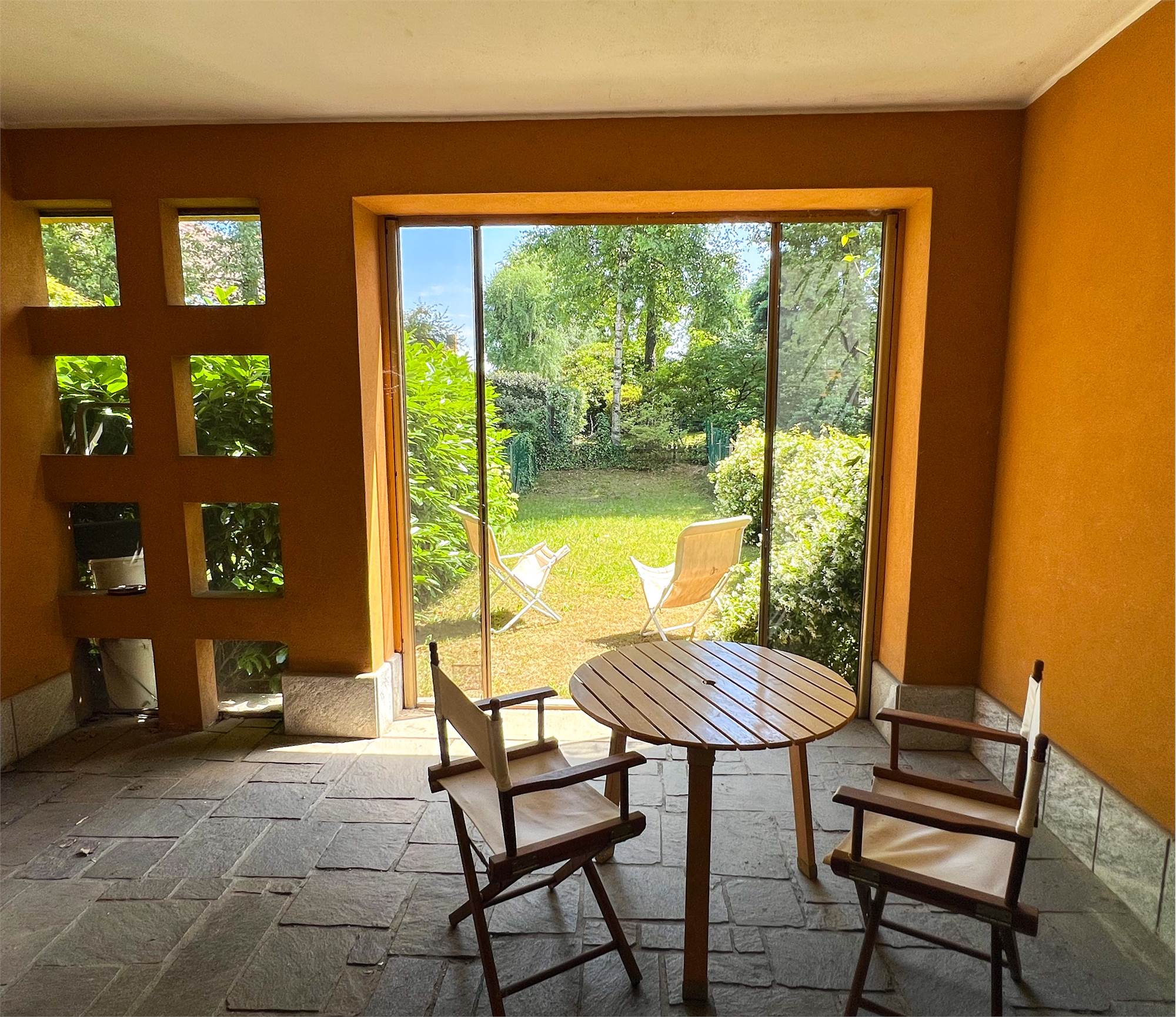 Ampia porta finestra che si affaccia su un loggiato e un giardino privato