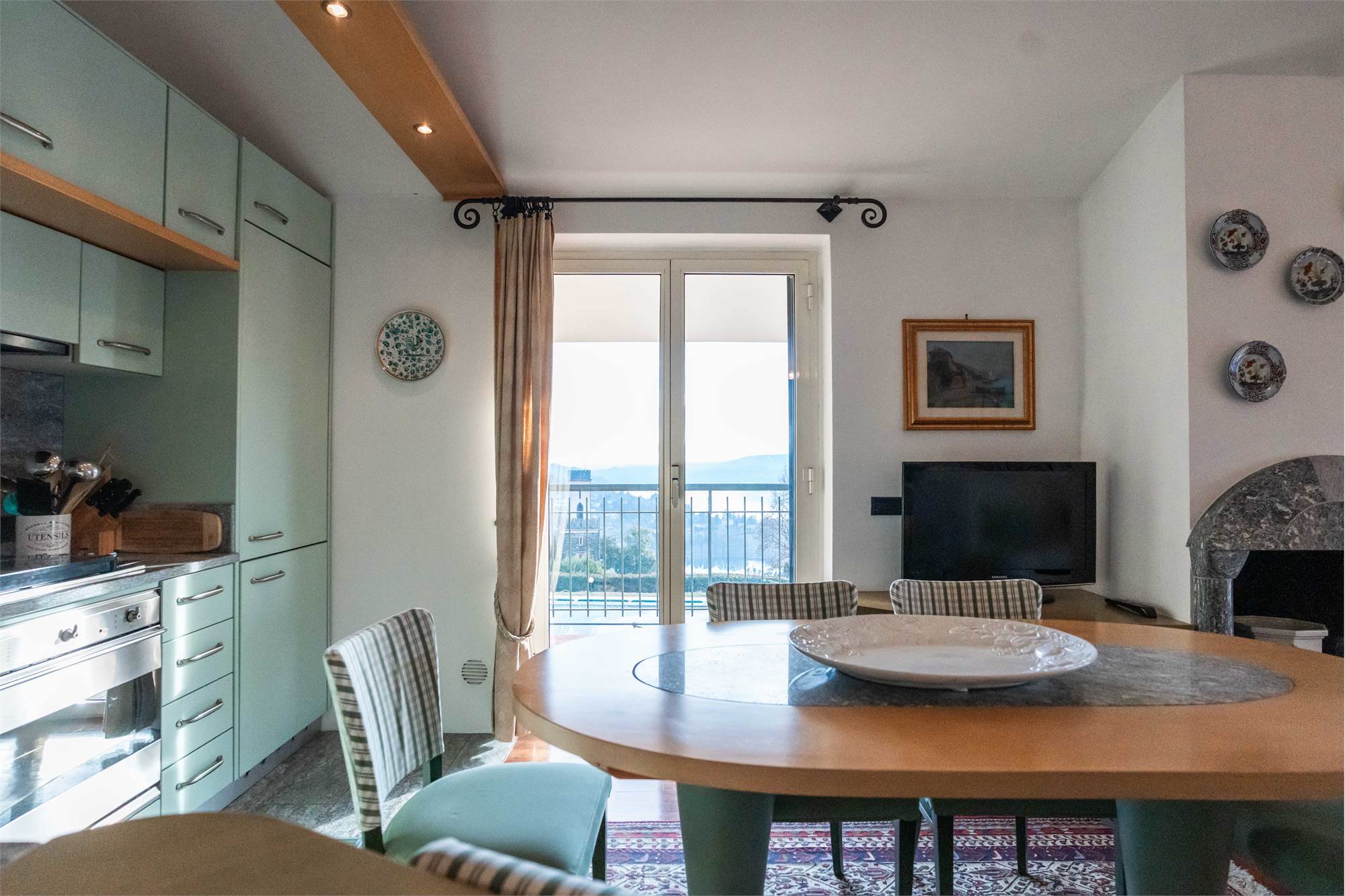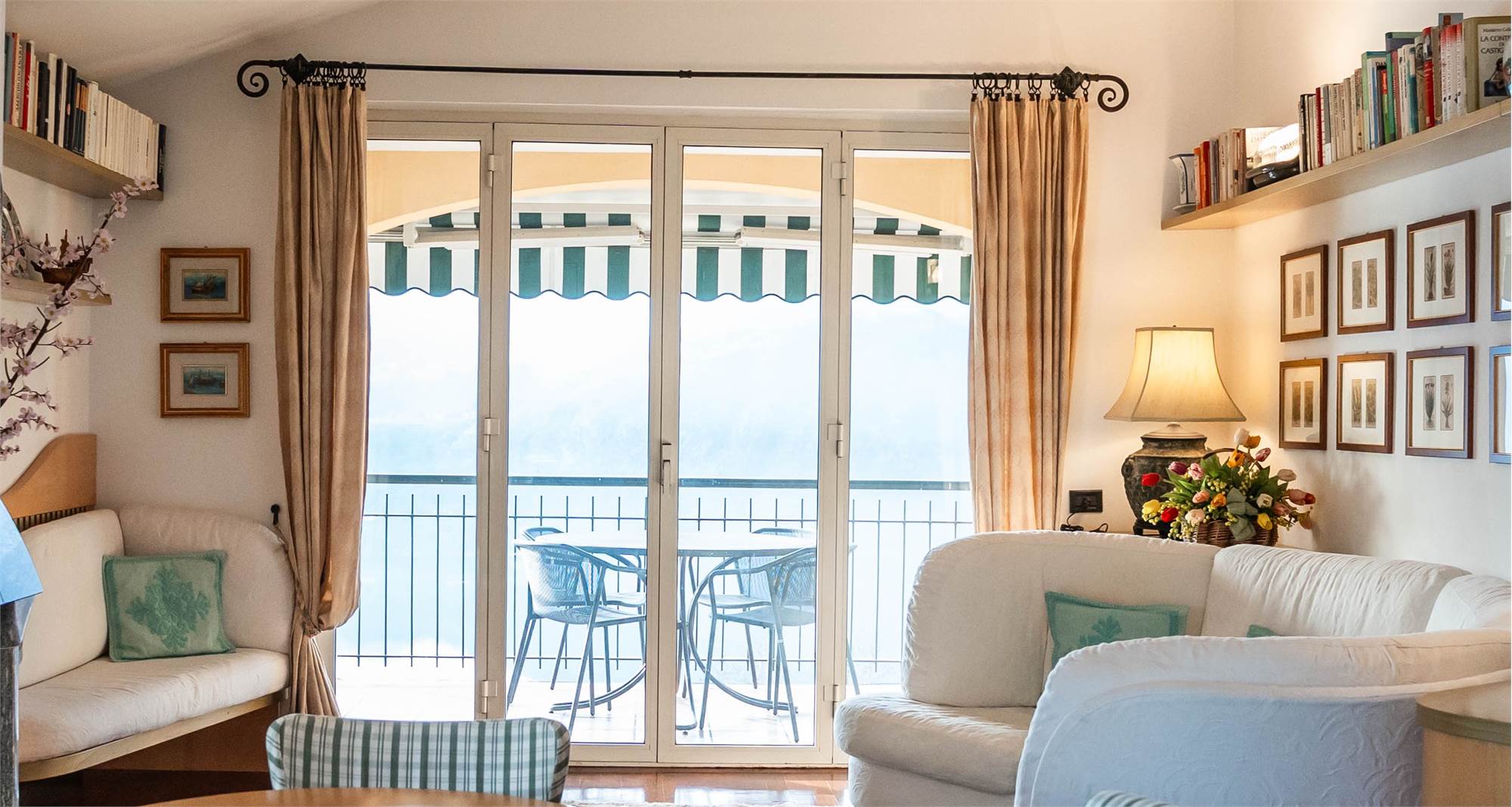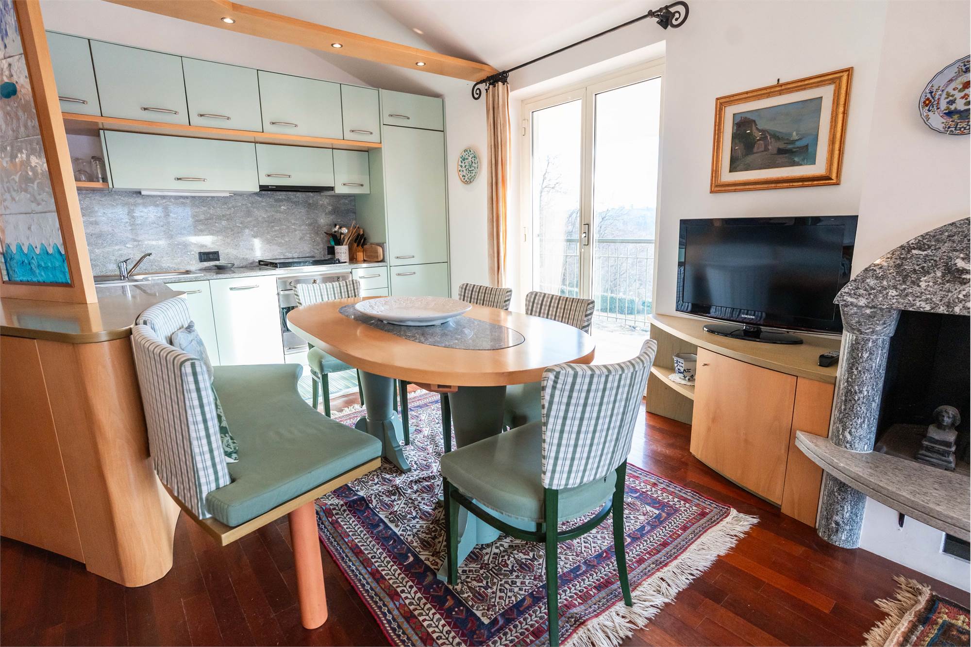 Fin dall’ingresso l’abitazione regala un’immediata sensazione di armonia e luce: il disimpegno introduce alla zona giorno, dove la porta finestra della cucina incornicia una vista mozzafiato sul lago, con lo sguardo che spazia dalla Torre del Buccione a Villa Crespi, fino alla penisola di Orta San Giulio.