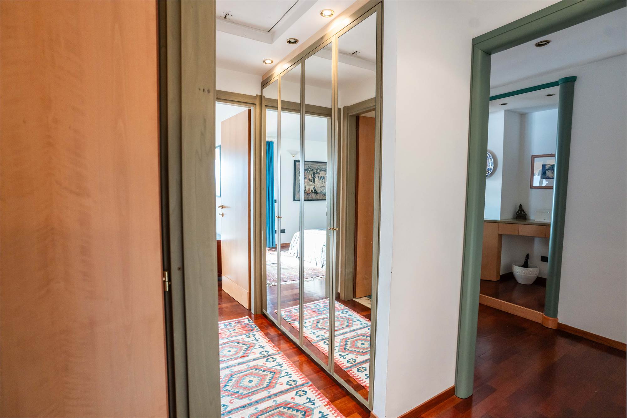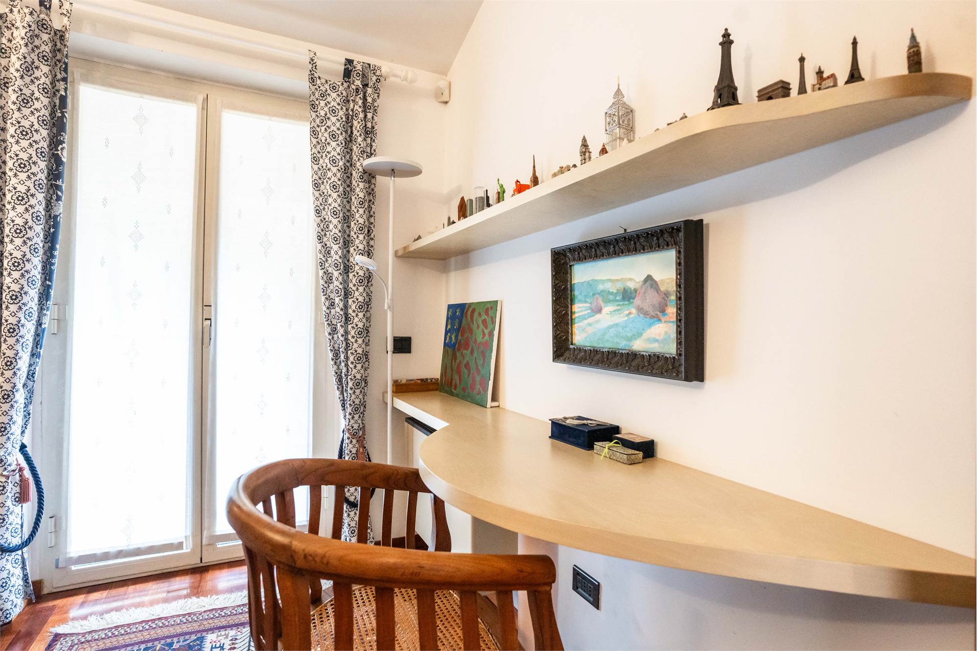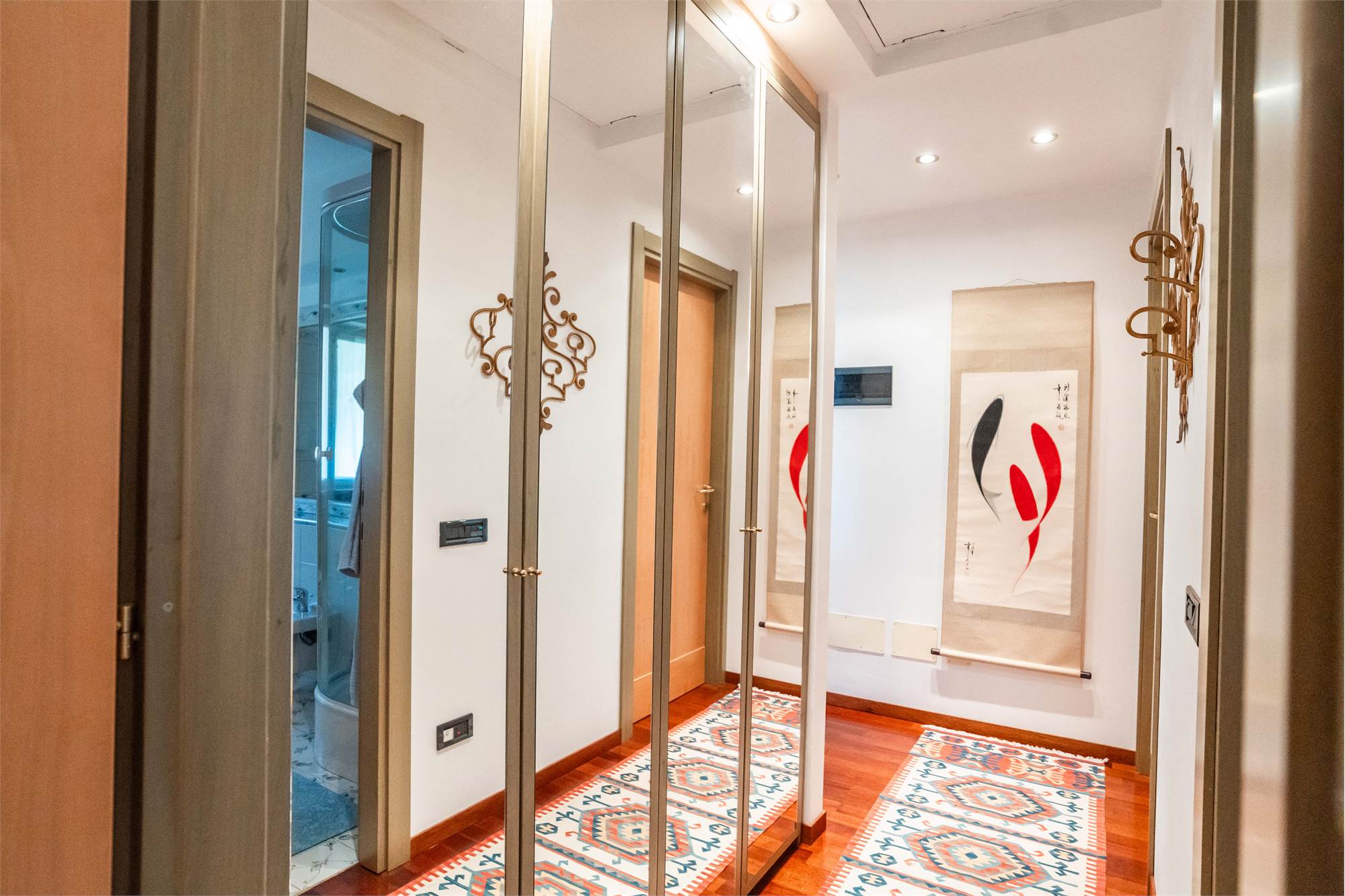 Fin dall’ingresso l’abitazione regala un’immediata sensazione di armonia e luce: il disimpegno introduce alla zona giorno, dove la porta finestra della cucina incornicia una vista mozzafiato sul lago, con lo sguardo che spazia dalla Torre del Buccione a Villa Crespi, fino alla penisola di Orta San Giulio.