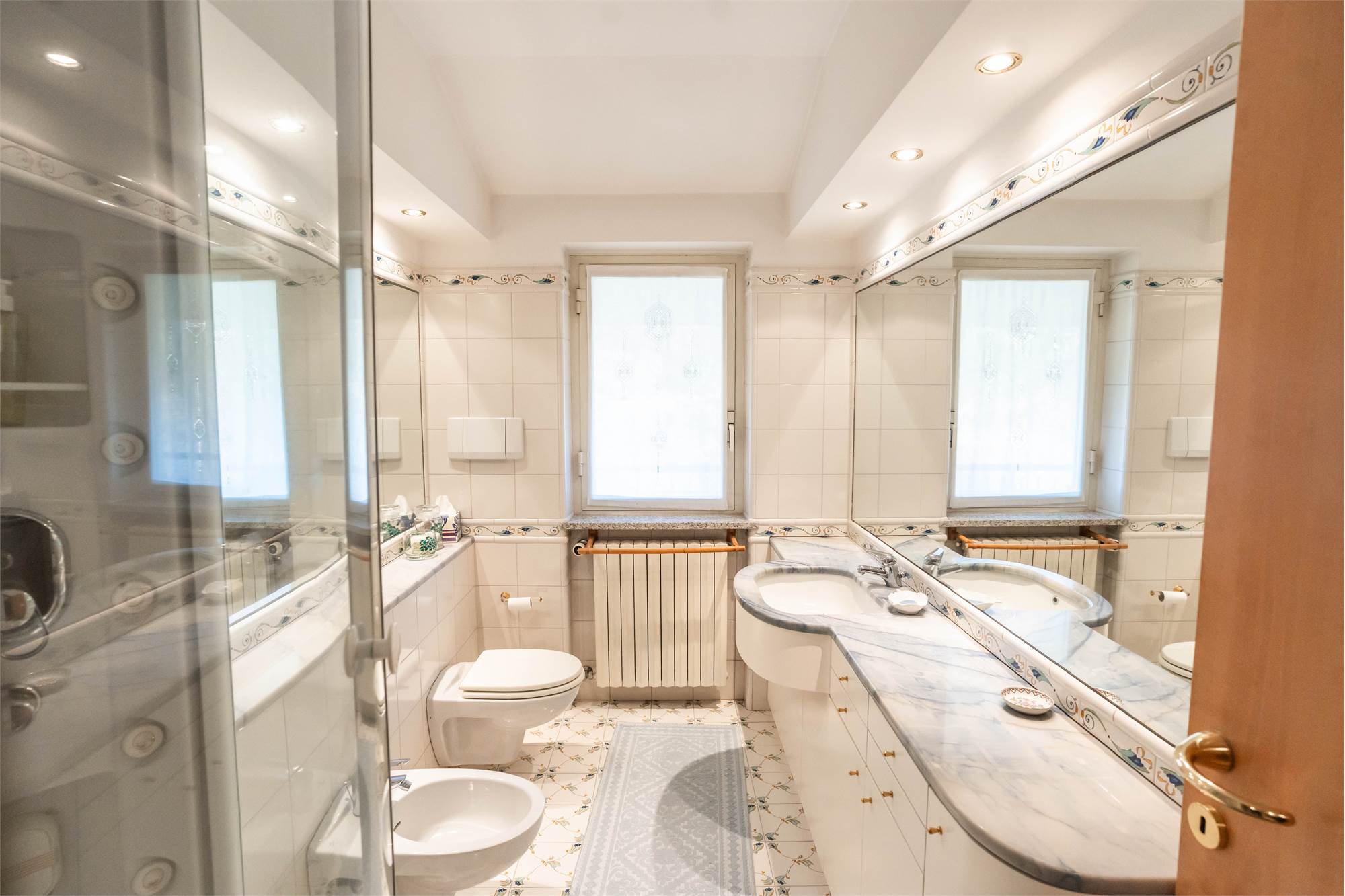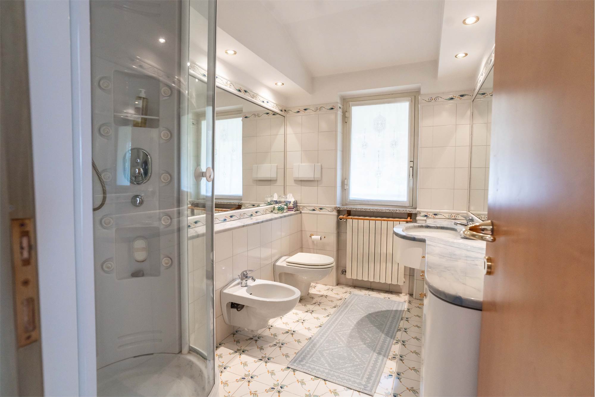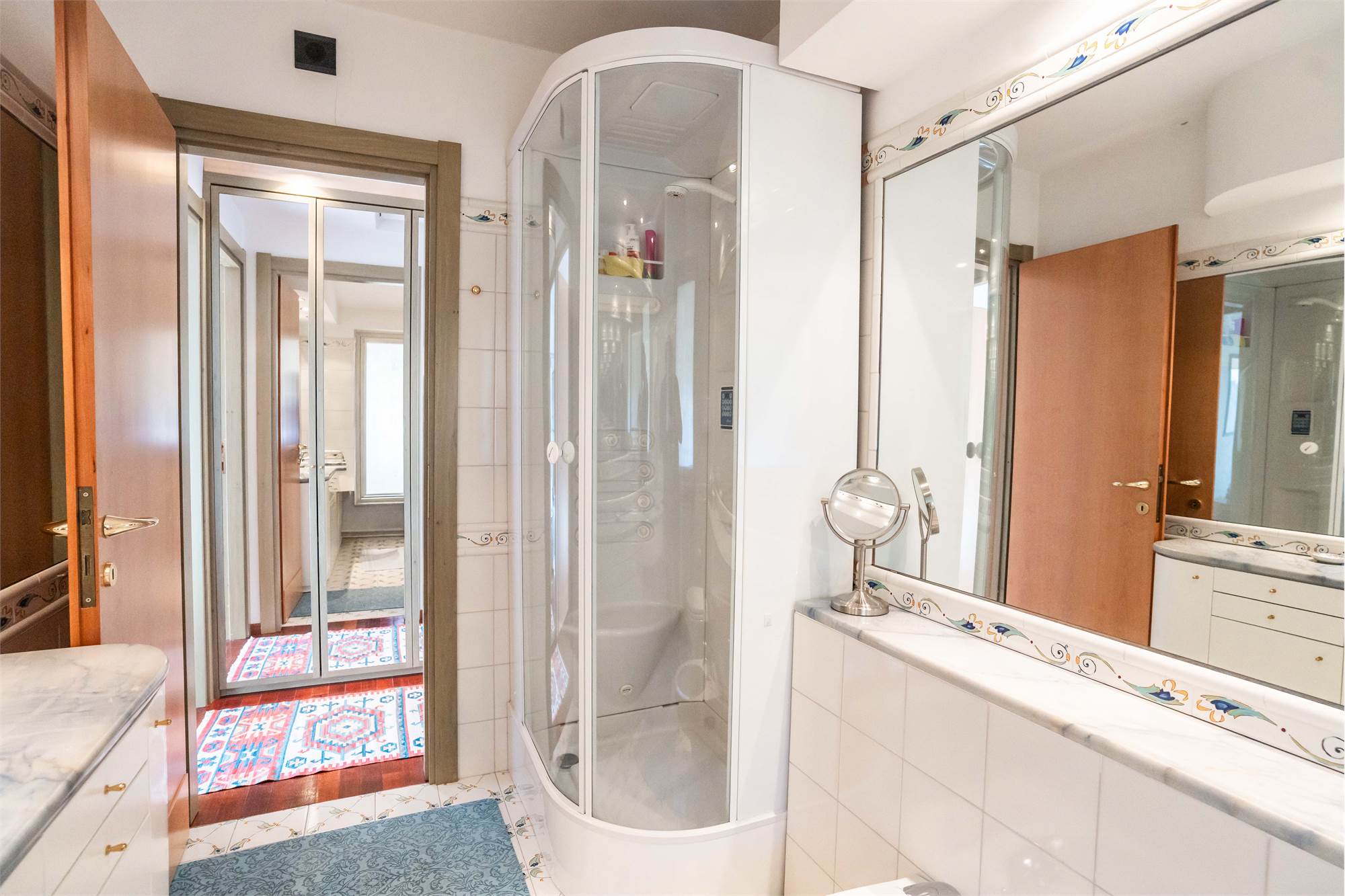 bagno elegante e curato, completamente arredato, dotato di box doccia multifunzione con funzione sauna,