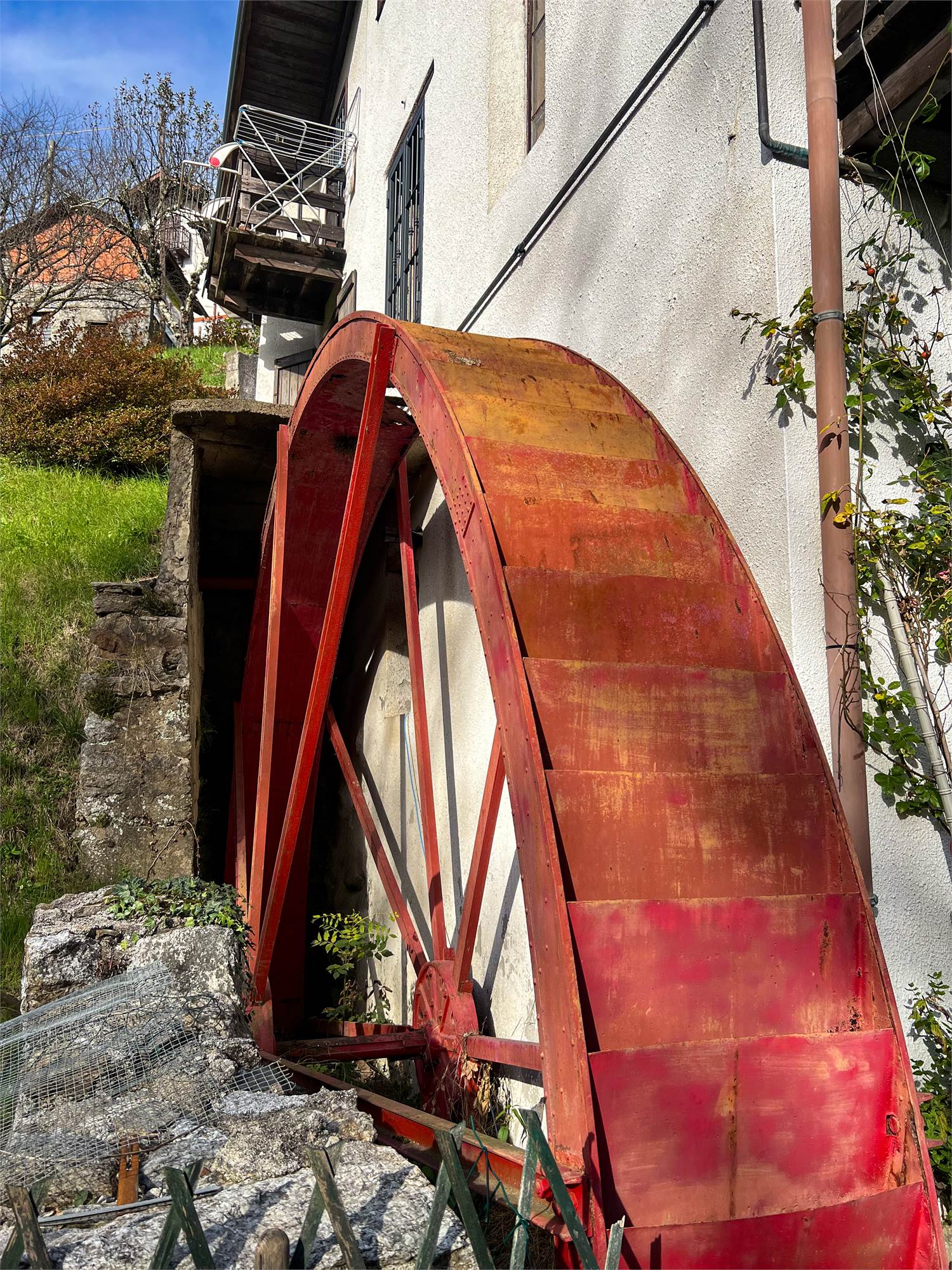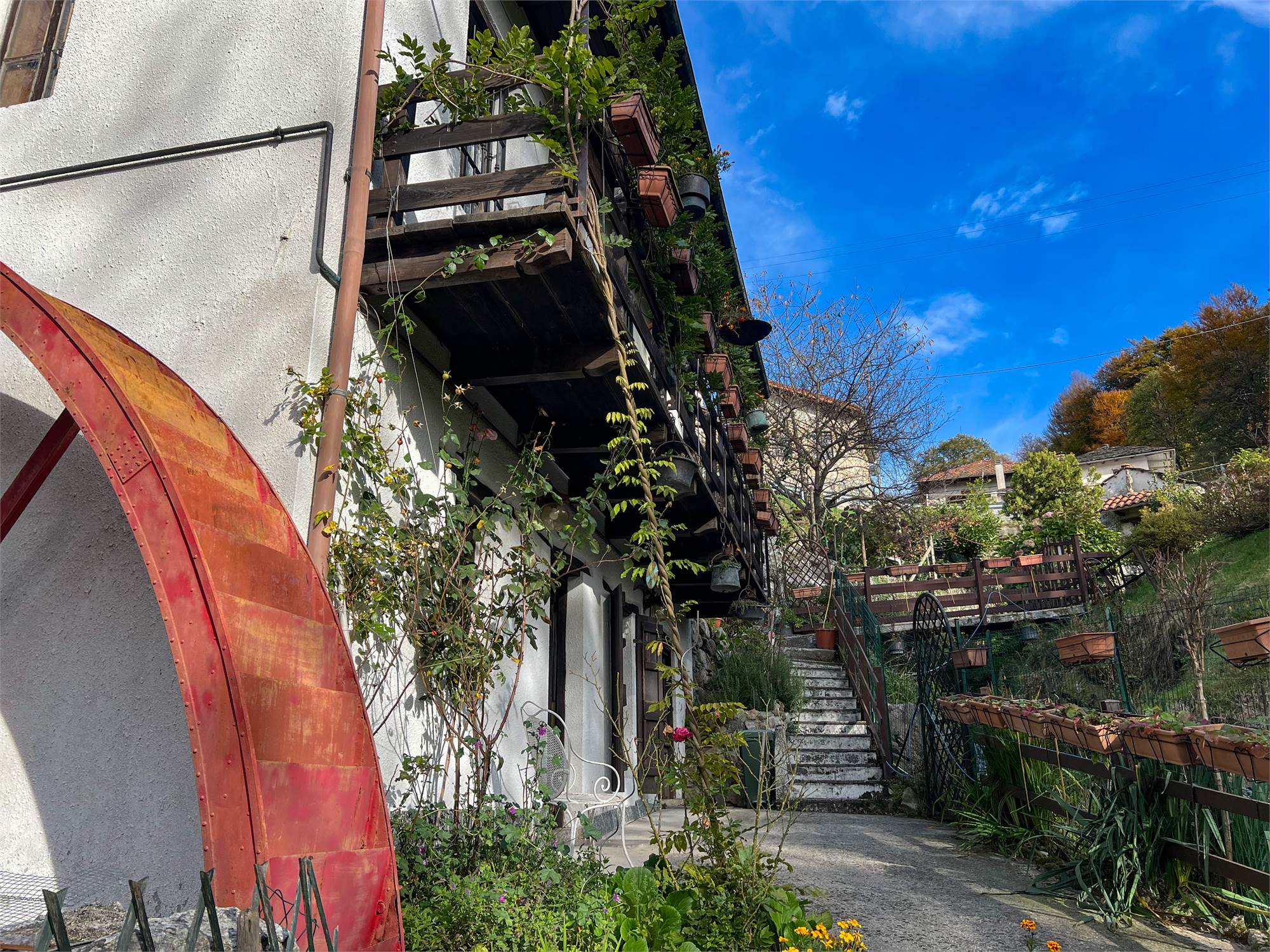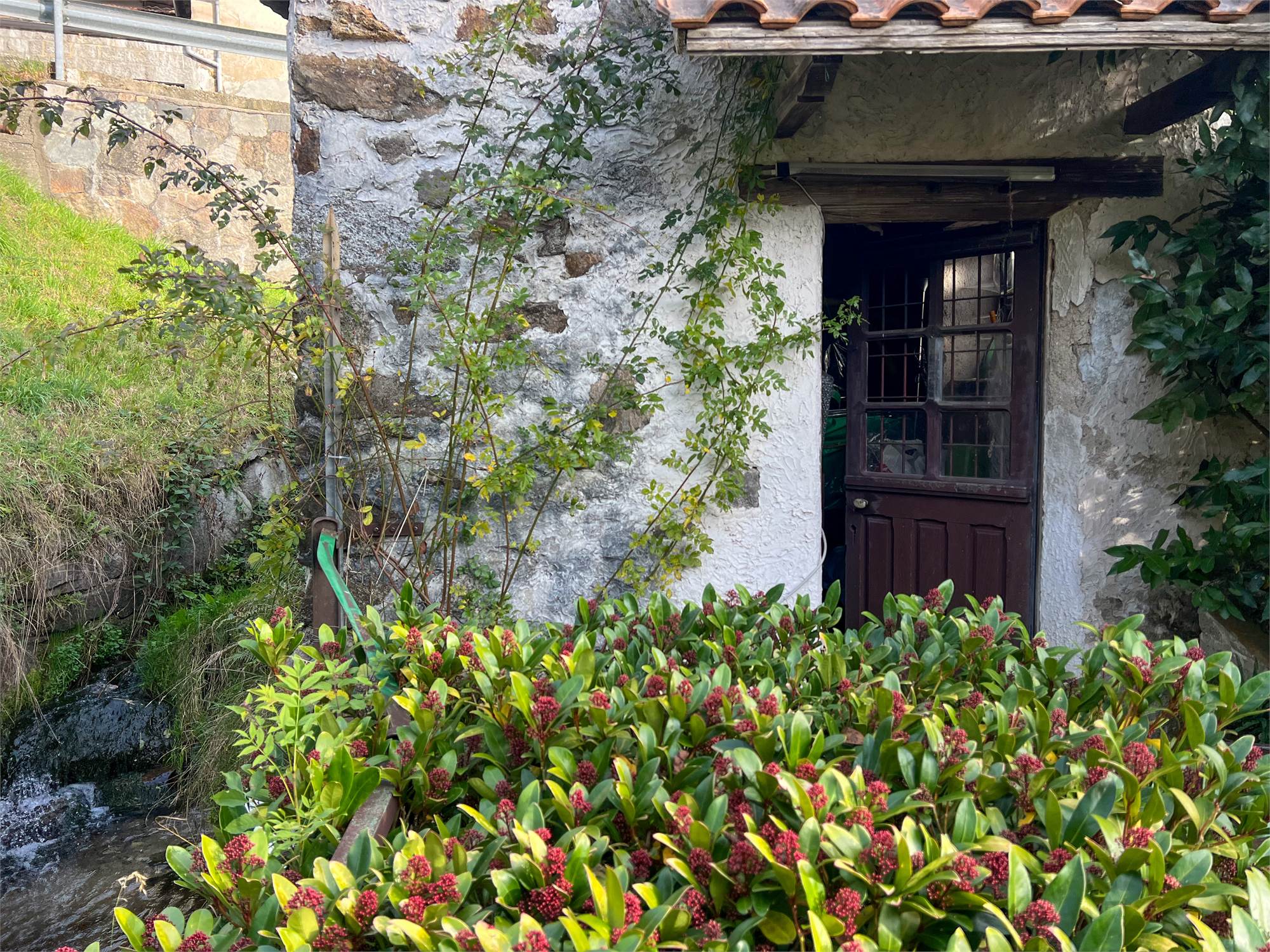 All’esterno, il giardino di circa 1.500 metri quadrati accoglie orto, alberi e fiori curati, un rustico in pietra utilizzabile come deposito o piccola dependance, e la ruota originale del mulino, perfettamente integrata nella scenografia naturale.
