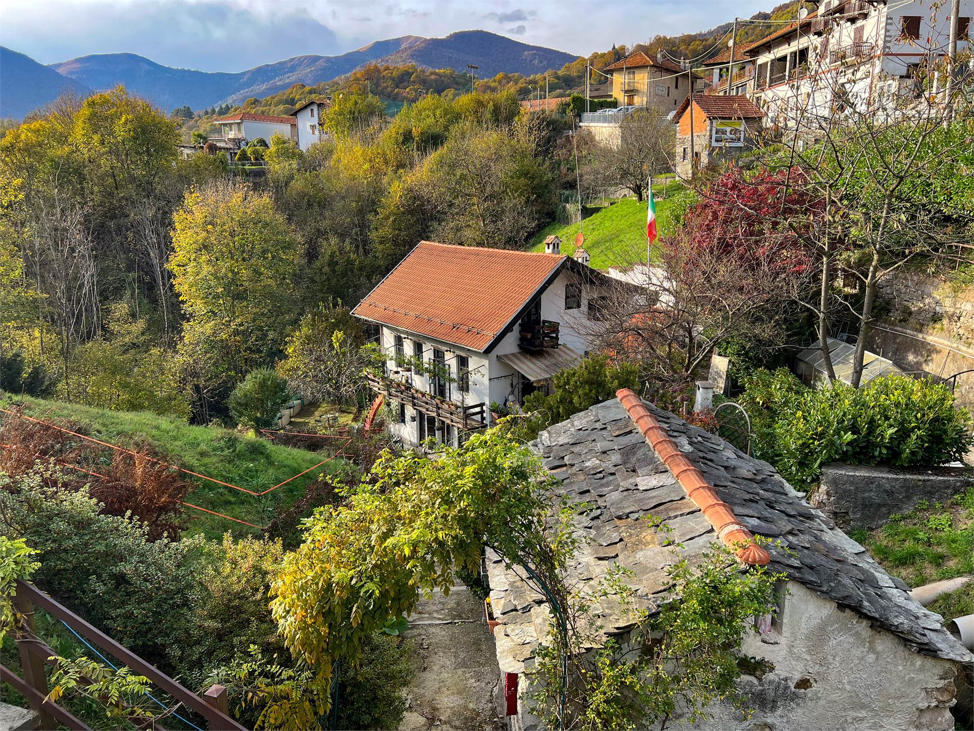 Il contesto è panoramico e silenzioso, con vista aperta sulle montagne del Verbano Cusio Ossola. La casa è raggiungibile in pochi minuti dal centro del paese, in una zona dove il turismo lento e la qualità della vita sono ancora autentiche. Qui si viene per respirare aria buona, ascoltare l’acqua che scorre, leggere, scrivere o semplicemente stare.