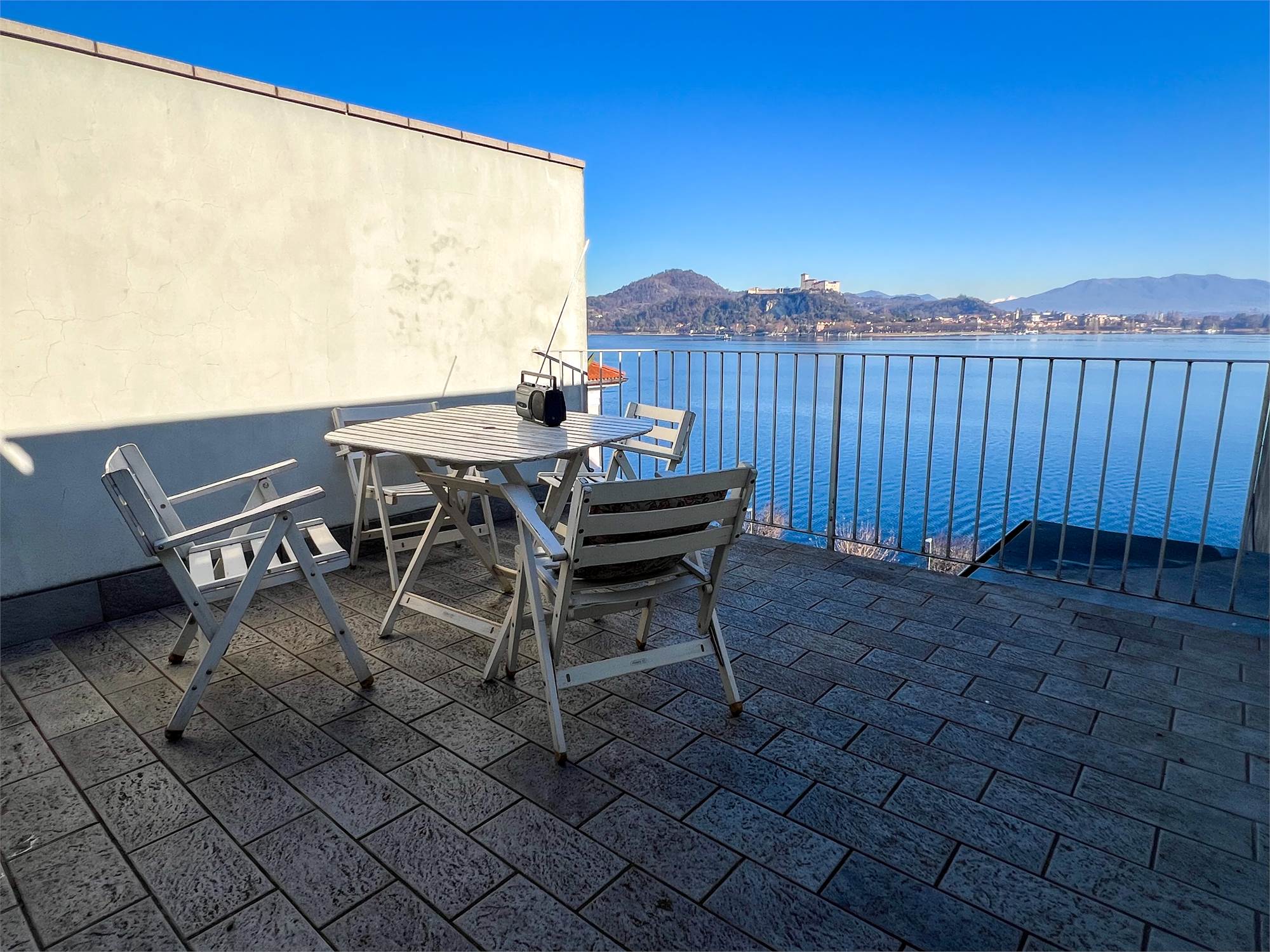 All’ultimo piano, la favolosa mansarda rappresenta il fiore all’occhiello di questa proprietà. Libera su tre lati, con esposizione est-sud-ovest, regala una vista mozzafiato sul Lago Maggiore, sulla Rocca Borromea e sui tetti del centro storico di Arona. Il terrazzo di 16 mq offre un’oasi di privacy, perfetta per rilassarsi ammirando il panorama unico. Gli interni includono un soggiorno con cucina a vista, un piccolo bagno/lavanderia, e un salottino che si apre direttamente sul terrazzo.