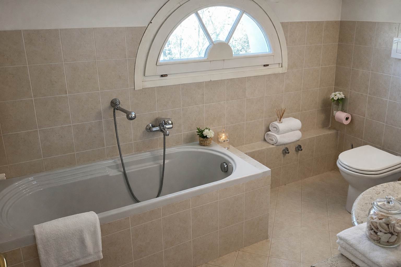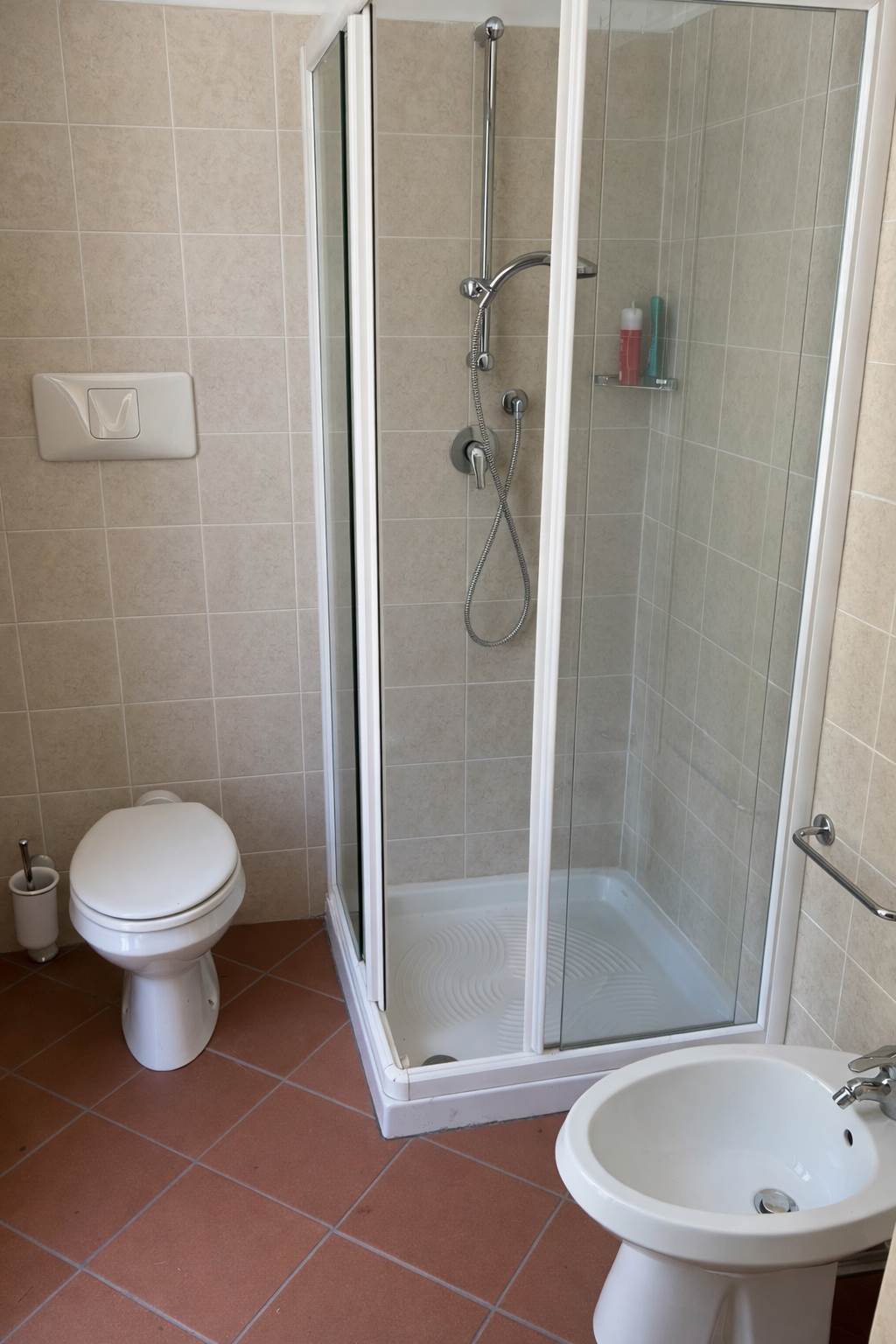 Sul medesimo livello è presente un bagno di servizio con doccia.