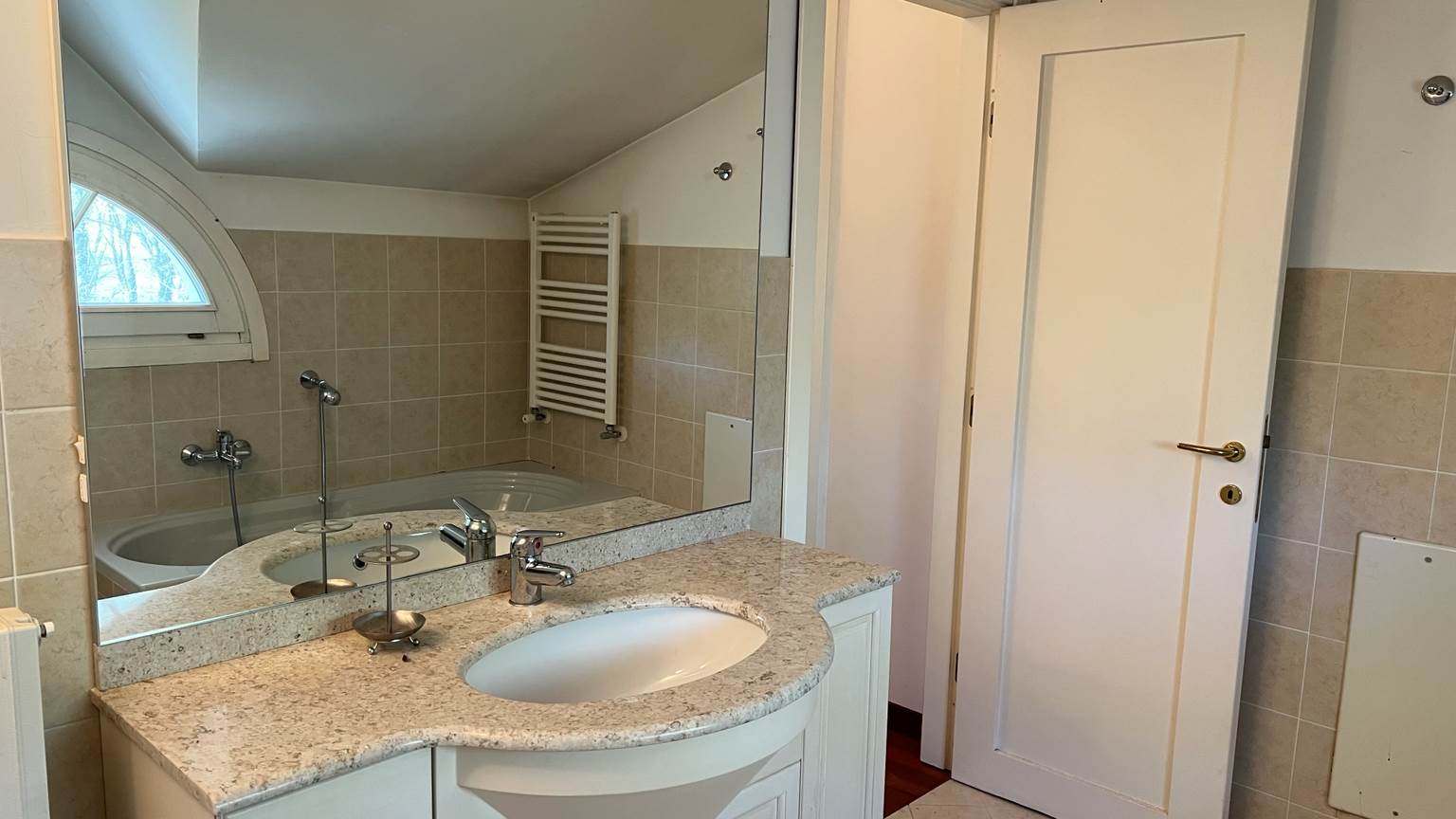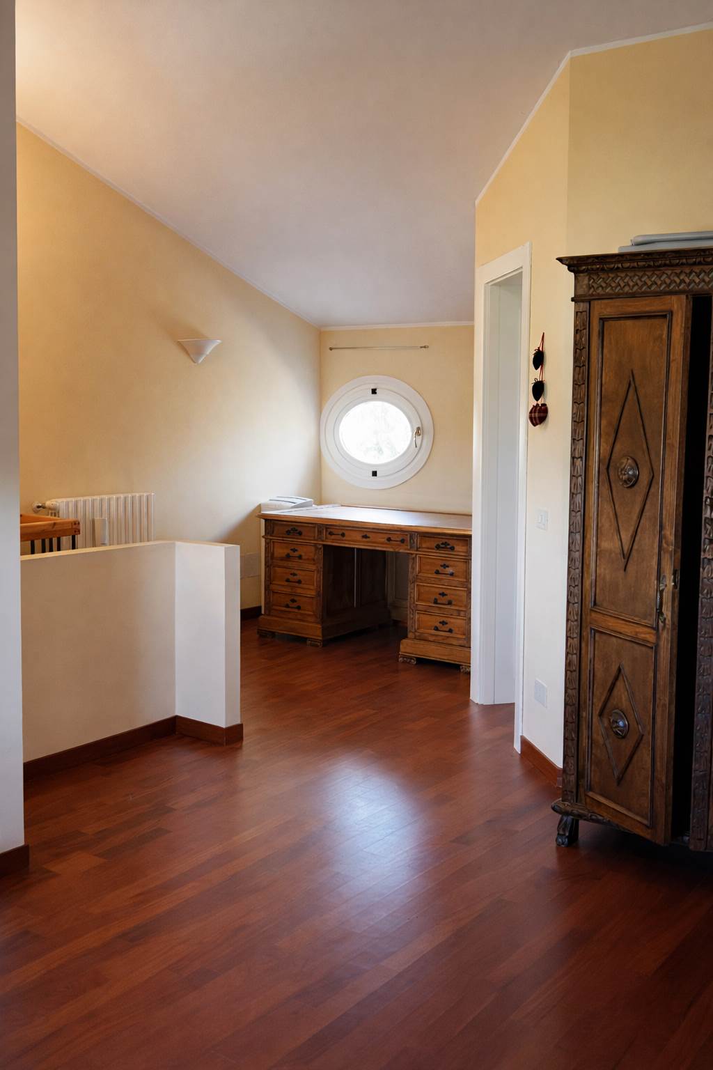 Al piano superiore si sviluppa un ampio sottotetto ben sfruttato, dove trova spazio la zona notte, con possibilità di ricavare un comodo angolo studio/smart working, oltre a cabina armadio e bagno padronale.